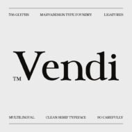 Introducing Vendi font is a stylish Serif typeface characterized by its clean lines and unique features, especially its slightly curved serifs. The serifs, or the small decorative strokes at the end of the characters’ main strokes, exhibit a subtle curvature that sets Vendi apart from more traditional Serif fonts. This curvature adds a touch of elegance and personality to the font, giving it a distinct appearance while maintaining a clean and professional aesthetic. Overall, Vendi combines the classic sophistication of Serif typefaces with a modern twist, making it suitable for a wide range of design projects where clarity and uniqueness are desired.